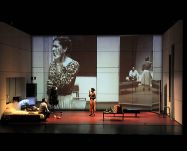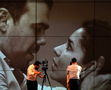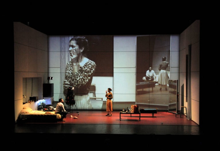 El diseño de videoescena se desarrolló a través de ejercicios exploratorios que replicaron y deformaron escenas de distintas adaptaciones cinematográficas de Casa de Muñecas. Mois propuso una estructura visual basada en cámaras inalámbricas y proyecciones en tiempo real, permitiendo que la imagen cinematográfica se tejiera con la acción teatral. El storyboard sirvió como guión técnico y rítmico, definiendo encuadres, movimientos de cámara y transiciones entre proyección y escena viva. El lenguaje visual emergió del diálogo entre artificio y verdad, entre registro documental y composición estética, configurando un espacio escénico donde la mirada del público también es puesta en cuestión.