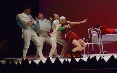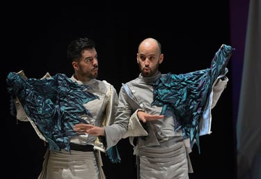 El diseño de vestuario se desarrolló mediante un proceso colaborativo entre Loreto Monsalve (vestuario), Rocío Hernández (escenografía) y Juan Pablo Peragallo (dirección), estructurado en torno a la idea de una materialidad común: el papel. Durante varios meses se exploraron conceptos, texturas y comportamientos físicos del material, ensayando su traducción al cuerpo y al espacio. La metodología se basó en la experimentación conjunta y en el cruce de disciplinas, entendiendo el vestuario no solo como indumentaria, sino como arquitectura efímera que respira, se pliega y se transforma en escena.