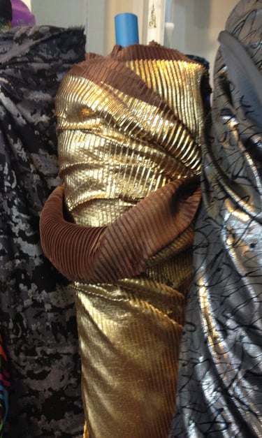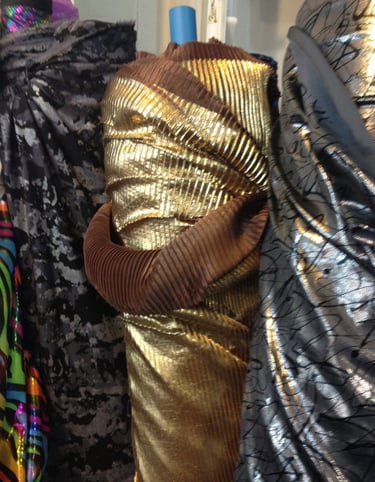 El punto de partida fue una reflexión estética y técnica sobre el papel como sustancia visual y simbólica. Monsalve y Hernández analizaron su potencial expresivo —fragilidad, transparencia, resistencia— y buscaron materiales textiles que pudieran emularlo sin perder movilidad. Se realizaron pruebas con distintas fibras, papeles y telas tratadas, evaluando su comportamiento ante el pliegue, la luz y el roce, en un proceso más cercano a la investigación material que al diseño tradicional.